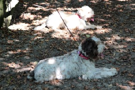 Zufrieden und redlich müde von der ungewohnten Arbeit liegen die Hunde im Schatten und ruhen sich aus.