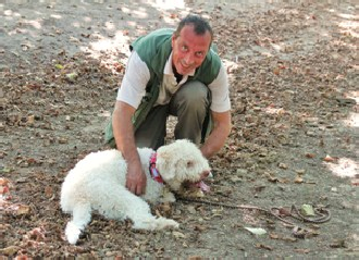 „Man muss ständig mit dem Hund sprechen, einen ständigen Kontakt zu ihm aufrecht halten, sonst folgt der Hund seinen eigenen Interessen“, erklärt der Leiter der Trüffelhunde-Universität.